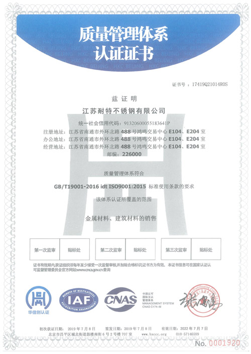 質(zhì)量管理體系認(rèn)證證書