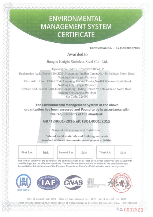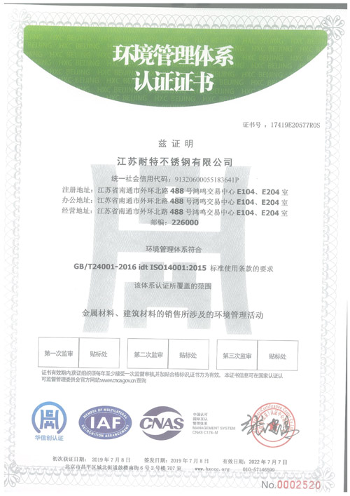 環(huán)境管理體系認(rèn)證證書